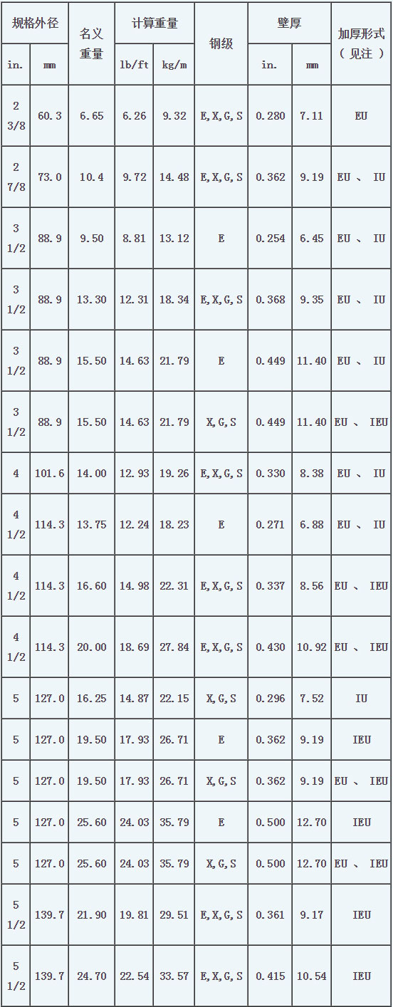 三、石油鉆桿加工規(guī)格(mm)Φ60.3~139.7